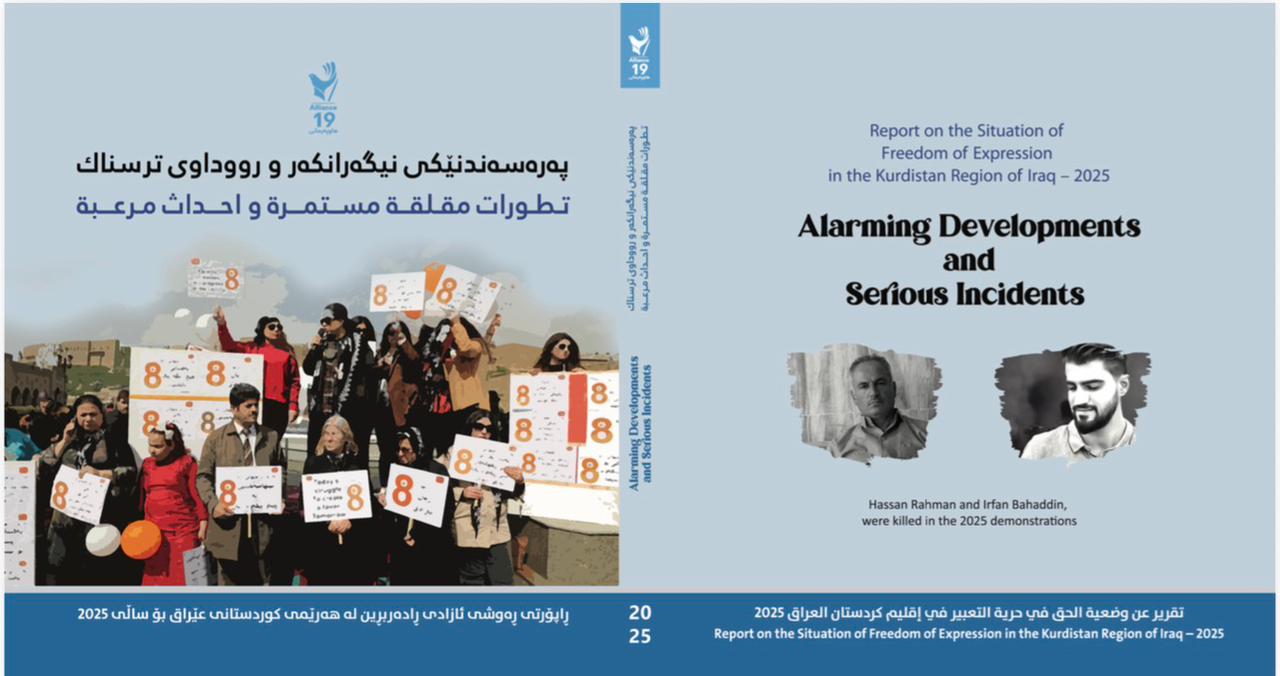 1- ڕاپۆرتەکە دەربارەی مافی ئازادی رادەربڕینە كە بۆ یەكەمین جار تۆڕی هاوپەیمانی19 ئامادەی دەكات و چاودێری سەدان ناڕەزایەتی كردووە (خۆپیشاندان، مانگرتن، گردبوونەوە)، تیشكی خستووەتە سەر شێواز و جۆر و شوێنی خۆپیشاندانەكان بە ژمارە و شێوازی مامەڵەی هێزە ئەمنییەكان لەگەڵ ناڕەزایەتی هاوڵاتیان و ژمارەی كوژراو بریندار و دەستگیركراوی ئەو چالاكیانە، لە هەموو شارەكانی هەرێمی كوردستان.